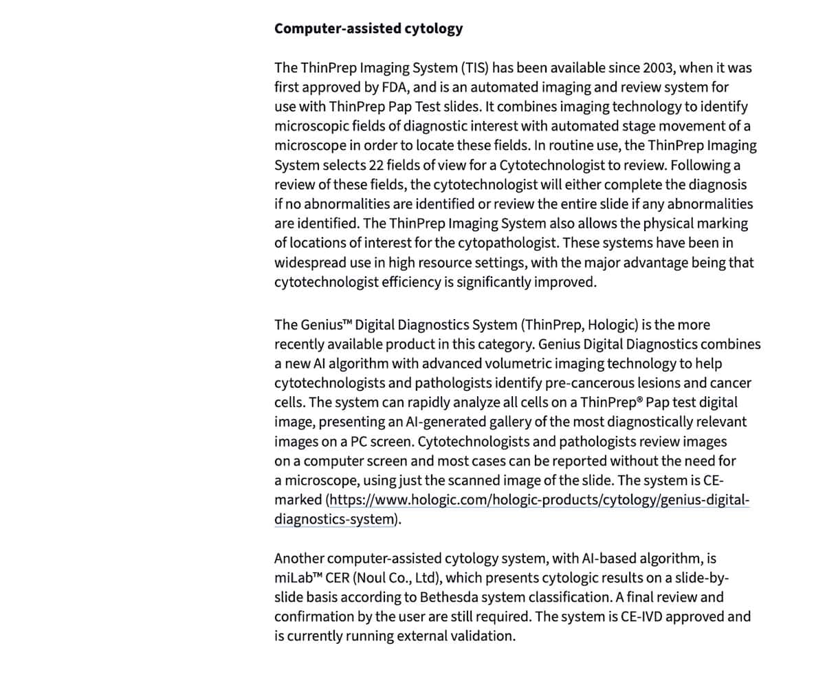 - 전문 인력의 노동집약적인 방식으로 Pap smear 검사를 수행하는 의료기관