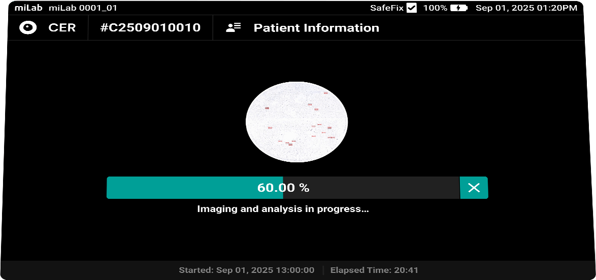 디지털 자궁경부세포분석 솔루션 miLab™ CER은, 도말된 자궁경부세포 슬라이드를 염색, 이미지 촬영, AI 분석까지 자동으로 수행하여 기존의 복잡한 검사 과정과 이에 필요한 인프라를 하나의 디바이스로 대체하였습니다. 디바이스 내에서 촬영된 자궁경부세포 이미지는 AI 알고리즘이 평균 약 25,000개의 세포를 분석하고, Bethesda 체계에 따라 분류하여 전암(pre-cancer) 및 암(cancer) 소견을 탐지합니다. 의료 전문가는 Viewer를 통해 현장 또는 원격으로 결과를 확인하고 재분류할 수 있으며, 그 결과를 바탕으로 현장 치료 또는 상급 병원 진료 연계 여부를 신속하고 정확하게 판단할 수 있습니다.